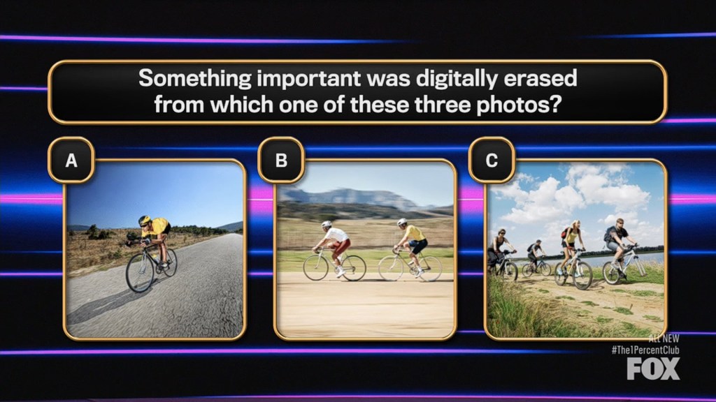 Q: Something important was digitally erased from which one of these three photos? (photo above)