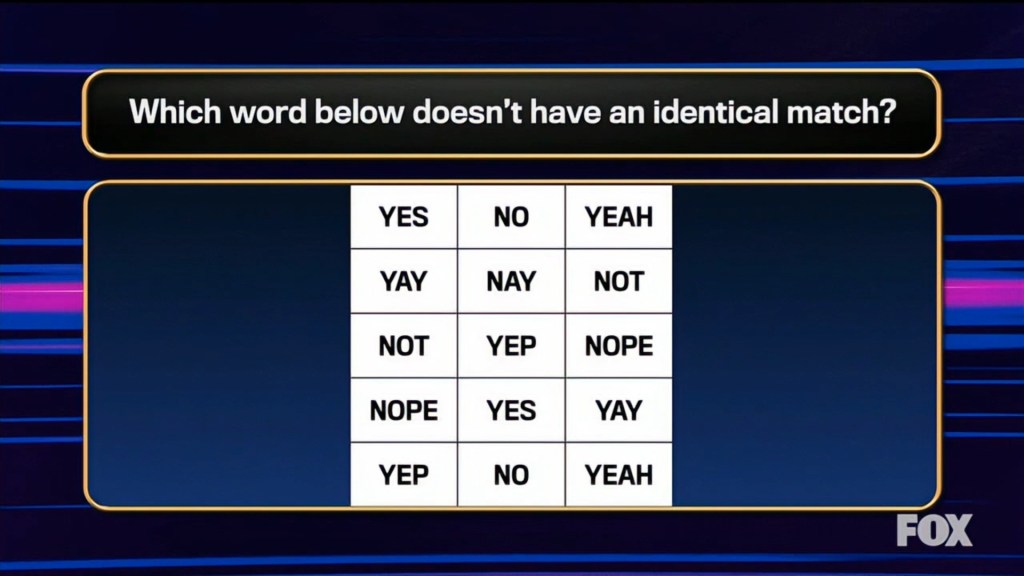 Here you’ll find The 1% Club questions and answers for USA Season 2 on FOX and Hulu. (We’ve also got The 1% Club questions and answers for UK Season 4 and Australia Season 3.) The main change for this season in 2025 is the change of host from Patton Oswalt in the first season to Joel McHale, who also stars in two other shows on the network, Animal Control and Crime Scene Kitchen. The show will also not be available on Amazon Prime this season.