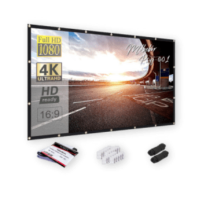 Need a budget projector screen for your home theater? The Mdbebbron 120-inch Projector Screen is as affordable as it gets. Made from a high-quality natural polyester material, its surface is smooth and perfect for all your 1080p and even 4K content. The material also makes it a double-sided screen, so it doesn’t really matter which side you’re going to aim your projector at. The best thing about it is that it is quite lightweight and has a foldable design, so you can carry it with you when you’re traveling, too. For the price that you’re paying here, it’s an absolute steal! With this projector screen’s price, you get to experience movies in an incredible way at home!