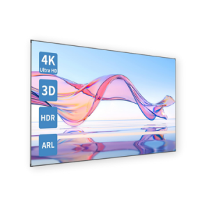 This wall-mountable 100-inch projector screen from Paris Rhône is the best you can get for ultra-short throw projectors. It is designed for 4K projectors and offers the optimal screen size that your projector is going to need. The screen is built with ALR materials that reject up to 92% of the ambient light to mitigate any glare and allow you to be completely immersed in the movie or game you’re watching. Every image on the screen is going to look vivid and sharp, ensuring you make the most out of your projector. And if you’re a fan of 3D movies, this projector screen supports that as well.