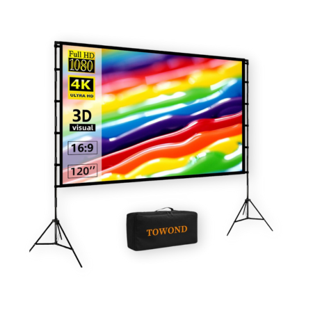 When you’re having a big binge party or watching the Super Bowl with friends, an outdoor projector is a great way to experience it all. This 120-inch projector screen has a good price that enables you to watch your favorite media in 4K. It’s made from high-quality polyester milk silk material, which makes it suitable for both indoor and outdoor purposes. The screen has an impressive 160-degree viewing angle, so you can gather a pretty good number of people to watch with you. With the tripod that it comes with, you don’t have to struggle to hang it. Additionally, the set includes a bag, making it easy to carry around.